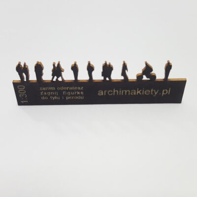 Zestaw 9 figurek, ludzików do makiet architektonicznych. Postacie zostały wycięte laserem z arkusza tektury o grubości około 1mm. Idealne do makiet konkursowych, dyplomowych i zaliczeniowych. Naturalny materiał dobrze komponuje się na makiecie.
